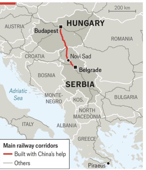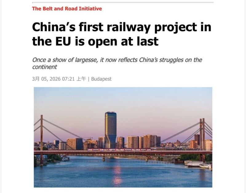 “Yet the opening on February 27th of the last stretch to be completed of the 350km link between the Hungarian and Serbian capitals was symbolic. It meant the first railway built with China’s help had entered use in the European Union.”