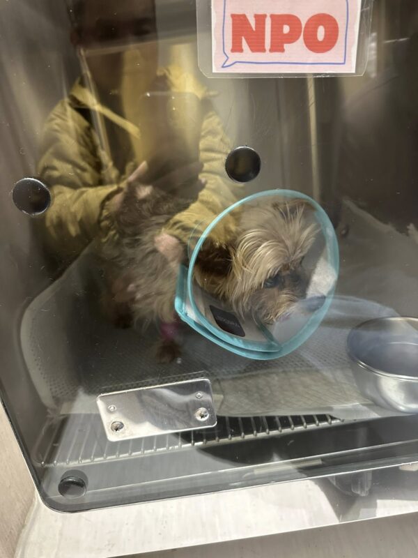 在醫院裡,Monet 一邊吸氧,一邊吊點滴補充水分。