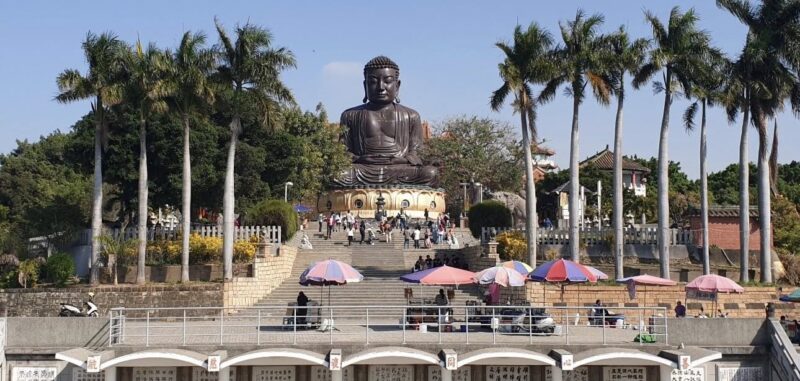 大佛所在的位置,本身就承載著歷史的更迭。清代曾是鎮番亭,後來毀於戰火;日治時期改建為北白川宮能久親王紀念碑。戰後紀念碑拆除,山頭重新空了出來,才成為大佛落腳的地方。