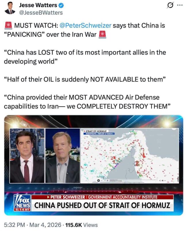 在 Fox News 的節目中,主持人 Jesse Watters 與政治評論家 Peter Schweizer 提出了一個頗具戲劇性的判斷:
