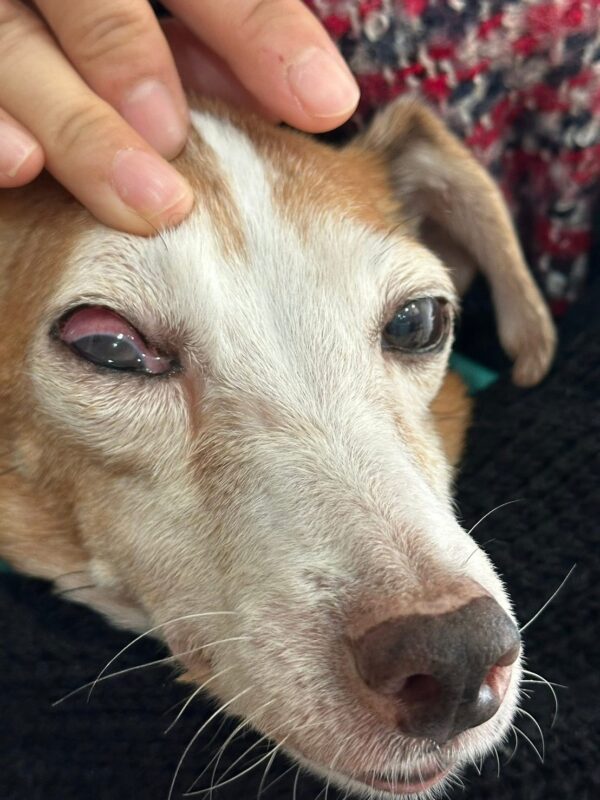 其實兩星期前我們的眼科複診院長已經發現,Jill 的角膜有潰瘍傷口,結了疤的傷口,所以應該是已經曾經潰瘍過,今次是新傷。