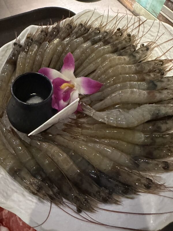 五十四隻蝦,六個人分著吃,