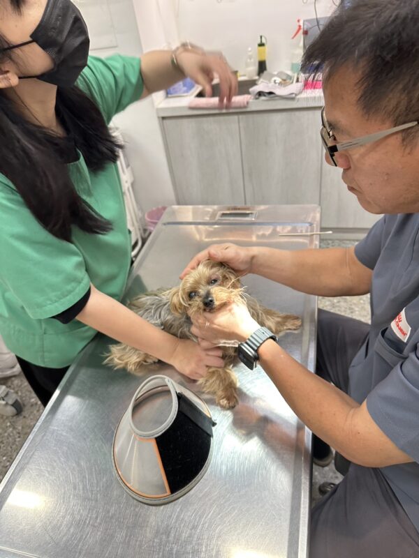 今天動物醫院還沒開門,我們就已經在門外排隊了。