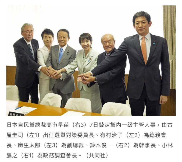 日本自民黨新任總裁高市早苗於近