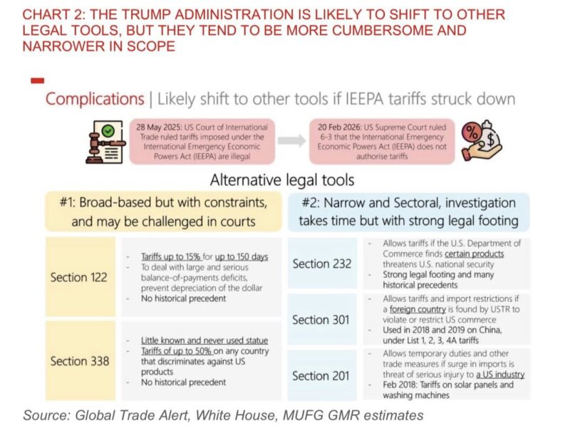 這份由MUFG發布的《Asia FX Talk》指出,美國最高法院以6比3裁定,特朗普政府此前依據《國際緊急經濟權力法》(IEEPA)徵收關稅的做法屬於違法。